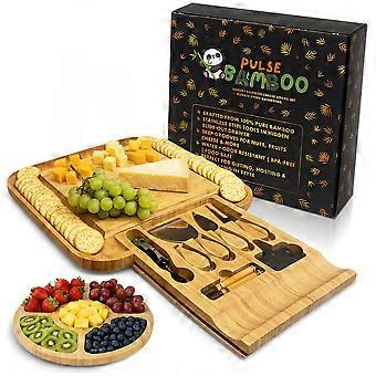 Charcuterie Board Set – Large Bamboo Cheese Board with SlideOut Drawer and Knife Set for Parties