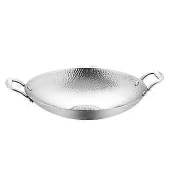 Spanish Paella Pan 36cm with Double Ears, 304 Stainless Steel Non-Stick Frying Pan for Seafood Camping Gatherings Silver