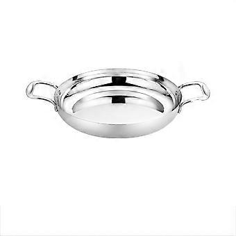 Stainless Steel Paella Pan with Double Handles, Flat Bottom for Stovetop & Oven Cooking, 18CM