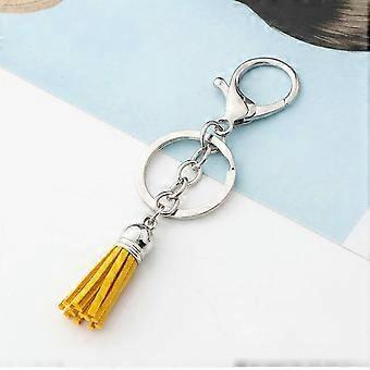 5 Pcs 35mm PU Leather Tassel Keychain Bohemian Bag Charm for Handbags DIY Crafts Deep Yellow