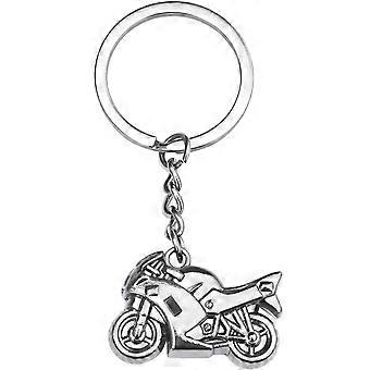 Silver Motorcycle Keychain with Racing Bike Design, Durable Metal Keyring Gift for Men and Women