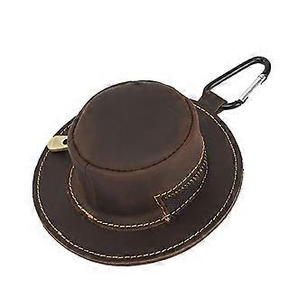 Leather Cowboy Hat Coin Purse Keychain Wallet with Brass Zipper Coffee Brown