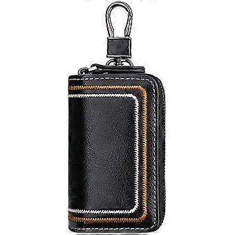 Vintage Leather Key Case for Men with Dual Zip Pockets and Compact Key Organization