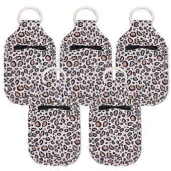 5pcs Leopard Print Lip Balm Holder Keychain with Secure Metal Clip Neoprene Travel Pouch