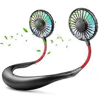 Portable Fan Neck Fan USB Rechargeable Hand Free Mini Personal Fan 3-Speed Color Changing LED 360 Rotation For Sports