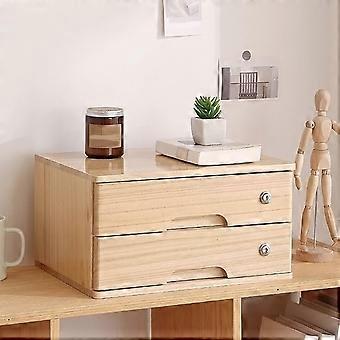 Wooden Desktop Storage Box with Lockable Drawers, Natural Wood Finish Organizer 40x30x22 cm