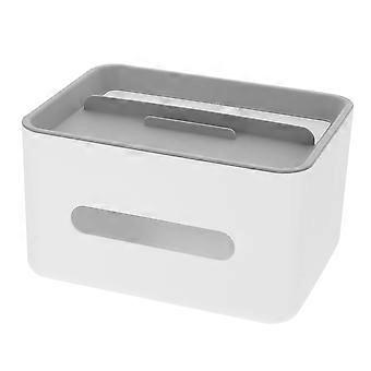 Tissue Box Organizer with MultiCompartment Desktop Storage and Remote Control Holder, Light Grey