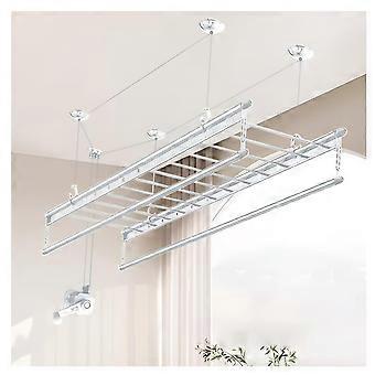 Ceiling Clothes Drying Rack, SpaceSaving 4Bar Adjustable Height Pulley Airer for Small Homes 150cm Silver