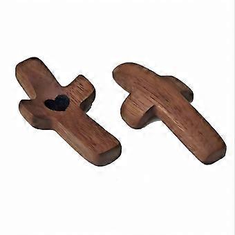Wooden Pocket Cross with Epoxy Heart for Prayer and Stress Relief, Small Handheld Faith Gift