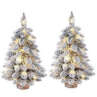 Prelit Tabletop Christmas Tree 18 Inch Snow Flocked Mini White Artificial Tree with Lights and Wood Base 2 Pack