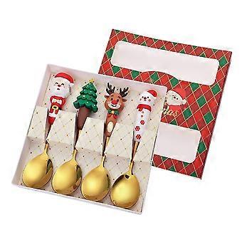 Christmas Spoon Set of 4 Stainless Steel Dessert and Coffee Spoons With 3D Cartoon Christmas Tree Elk Santa Snowman Gold