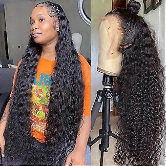 30 Inch Water Wave Lace Front Wig Human Hair 200 Density HD Transparent Brazilian Virgin Hair