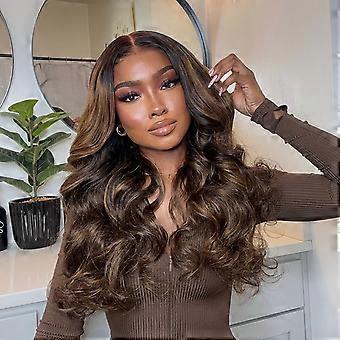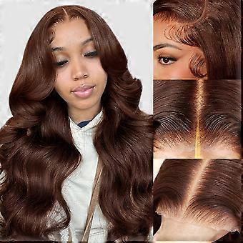 24 Inch Chocolate Brown Body Wave Glueless Lace Front Wig Human Hair 200 Density Preplucked HD