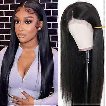 28 Inch Jet Black 13x6 HD Lace Front Human Hair Wig 250 Density Preplucked Natural Hairline