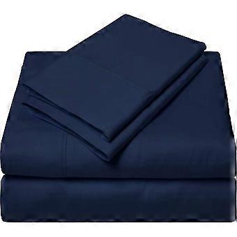 Solid Fitted Bed Sheet Set With Elastic Band 3 Pieces, Mattress Protector Cover, Fits 90x200220x200 CM, Dark Blue