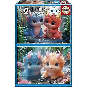 Puzzle - EDUCA - Cute Monsters - 2 x 100 pieces - For children aged 8 and up - Cartoon theme Educa