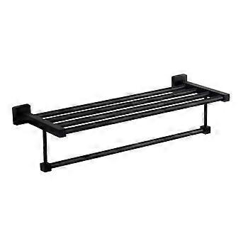 Black Wall Mounted Stainless Steel Towel Rack with Shelf and Rail for SpaceSaving Bathroom Storage