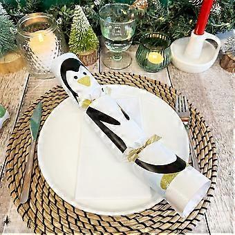 RACING PENGUIN CRACKERS INCLUDING GIFTS - Bring a touch of whimsy and fun to your Christmas celebration with our Racing Penguin Crackers. Each set includes 6 crackers, complete with wind-up toys for interactive holiday entertainment.CHRISTMAS TABLE DECOR- Each cracker is decorated with a penguin design, adding a playful and festive touch to your holiday decor. Inside each cracker is a wind-up racing penguin toy, snap, joke and party hat ensuring festive cheer at your Christmas gathering.MEASUREMENTS - 32cm x 6cm **IMPORTANT** These crackers are handfinished, imperfections may occur.**CHRISTMAS DECORATIONS - Elevate your Christmas by checking out the rest of our Christmas range to complete the look.SHARE WITH US - Tag us at @luckandluckshop with your creation. We love to see our products in use. ,WARNING: CHOKING HAZARD; Small parts. Not for children under 3 yrs.