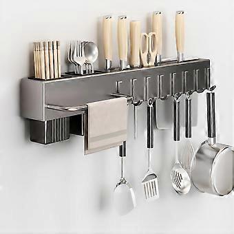 Kitchen Utensil Rack, 20' Wall Mounted Carbon Steel Organizer with 8 Hooks, Gunmetal Gray Knife Holder