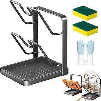Pot Lid Holder with Removable Drip Tray, Double Layer Kitchen Organizer Rack for Countertop, Gray