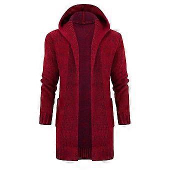 Red Cable Knit Basic Knitted Coat Open Edge Long Jacket 3XL