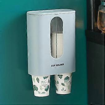 Wall Mounted Double Tube Paper Cup Dispenser DustProof SpaceSaving Holder for Office Home Restaurant Blue 80 Cups
