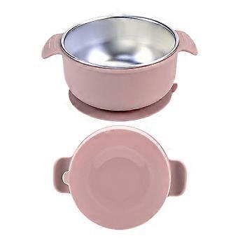 Removable Silicone Shell Toddler Bowls with Stainless Steel Inserts - Anti-Scald Food Storage Containers in Light Pink