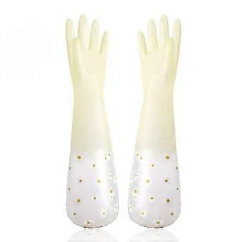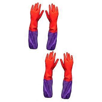 2 Pairs Waterproof Latex Cleaning Gloves with Warm Velvet Lining Long Rubber Dishwashing Gloves