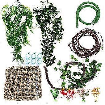 Reptile Plant Vine with Flexible Leaves for Terrarium Decor, Jungle Habitat Decoration for Lizards and Snakes, Artificial Greenery