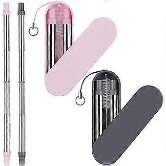 Reusable Straws Telescopic Metal Travel Straws - Stainless Steel Drinking Straws, Portable Collapsible Straw With Case Key Chain Cleaning Brush, 2