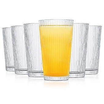 Ribbed Tumbler Set of 6 for Cocktails and Smoothies, 16 oz, Durable Plastic, Multi-Color, BPA-Free