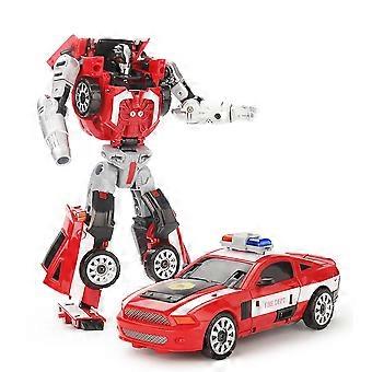 Transforming Robot Toys Fire Truck 5in1 Rescue Vehicles Alloy Ladder Truck Red Silver