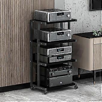 Rolling AV Media Stand With 4 Wheels, Black, 50 x 40 x 94 cm, Storage Shelves, Cabinet For Record Player, Game Console