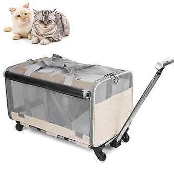 Rolling Cat Carrier with Wheels for 2 Double Cats, Cat Carrier with Wheels, Khaki