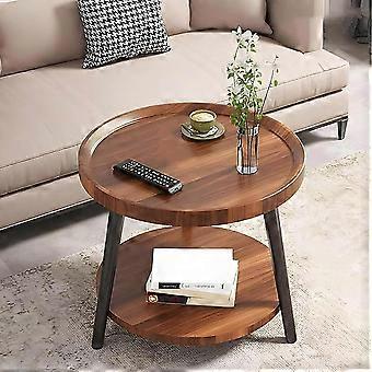 Round Coffee Table With Storage, Wood Farmhouse Round Side Table, Small Living Room Round Table For Home Office Balcony