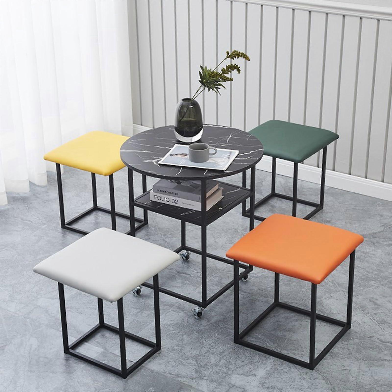 Round Table And Chairs Set Of 5, Stackable Kitchen Chairs With Wheels, Metal Frame Black Dining Table, Space Saving