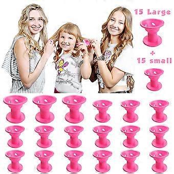 30pcs Silicone Hair Curlers Set for No Heat Styling, Soft Reusable Rollers in 2 Sizes for Wet Hair