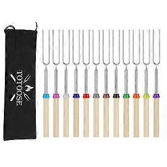 Marshmallow Roasting Sticks Set of 12 Telescoping 32 Inch Stainless Steel Skewers with Wooden Handles for Campfire and BBQ Ref:7294