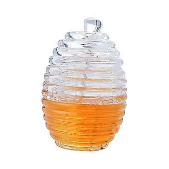 Modern Glass Honey Jar 13.5 cm L x 10 cm W, Transparent Glass With Dipper, Food-Grade, For Family And Friends