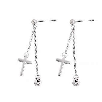 s925 Sterling Silver Cross Dangle Post Earrings