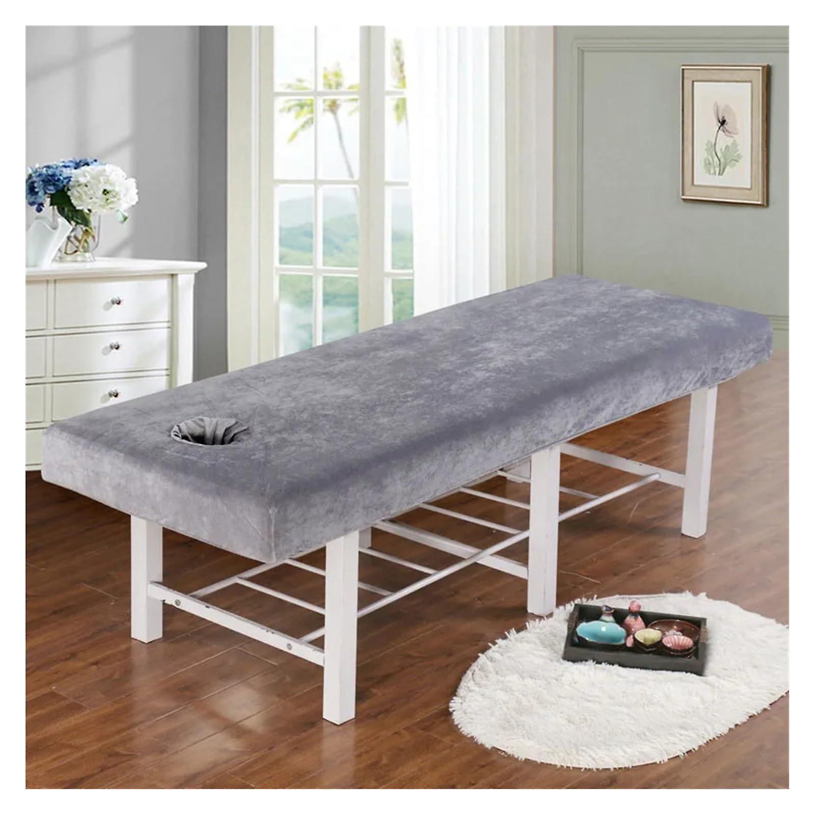 Thick Velvet Beauty Salon Massage Table Fitted Sheet, Spa Duvet with Hole (Grey, 190x70 cm)