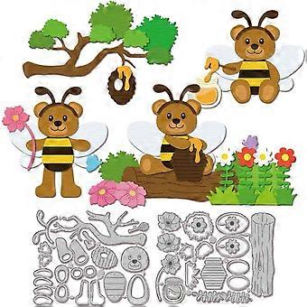 Bee Bear Cutting Dies for DIY Scrapbooking Metal Flower Honey Cut Dies Tree Trunk Grass Beehive Die Cuts for Card Making Embossing Photo Album Craft D