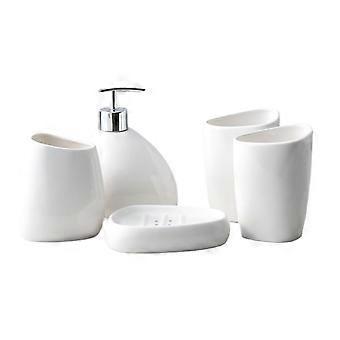 Bathroom Accessory Set White Ceramic 5 Piece Complete European Style with Elegant Design Gift Ready