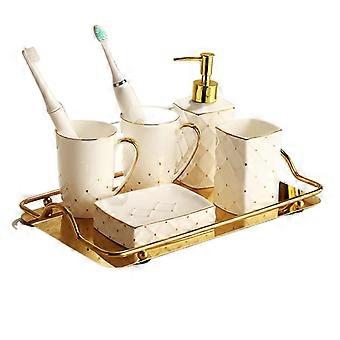 Ceramic Bathroom Accessories Set with NoDrill Installation, FivePiece Countertop Organizer