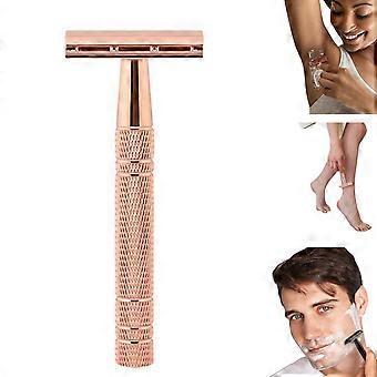 Safety Razor for Women and Men, Rose Gold Reusable Metal Razor with 5 Blades and Stand, Manual Single Blade Razor