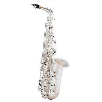Silver E Flat Alto Saxophone with Carved Pattern, Brass Body, Mouthpiece, Gloves and Cleaning Kit