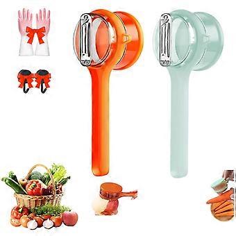 2PCS Stainless Steel Vegetable Peeler Set with Catcher Bucket, DoubleSided Blades, Orange and Cyan