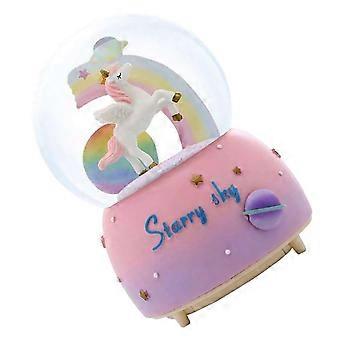 Snow Globe Music Box with LED Lights, Pink Unicorn Automatic Snowfall Glass Ball for Girls Bedroom Decor