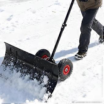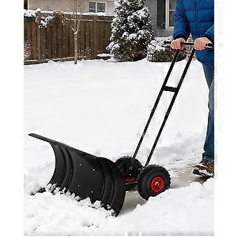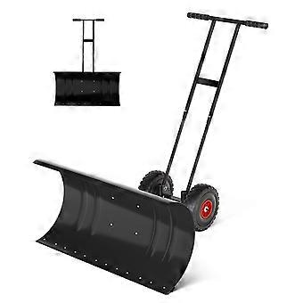 29 Inch Heavy Duty Snow Shovel with Wheels, Wide Metal Blade, Adjustable Handle for Driveway and Sidewalk