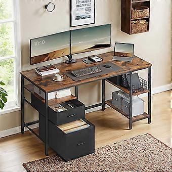 Computer Desk with 3 Shelves and 2 Drawers, Vintage Brown-Black 60 x 140 x 76 cm - Lwdb35104b01 Homestorecity